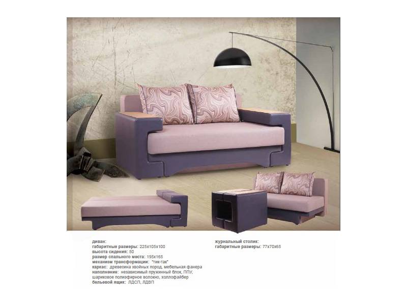 Общие габариты: 1,55*1,02 Спальное место: 1,2*2,0 Механизм трансформации: Металлокаркас Комплектация:1,ППУ, Hollkon 2.НПБ, Hollkon Декор: декоративные подлокотники (несколько цветов на выбор), декоративная отстрочка боковин, декоративная отделка кантом боковин и подушек Наполнитель подушек: Контурная резка ППУ Имеется ящик для белья